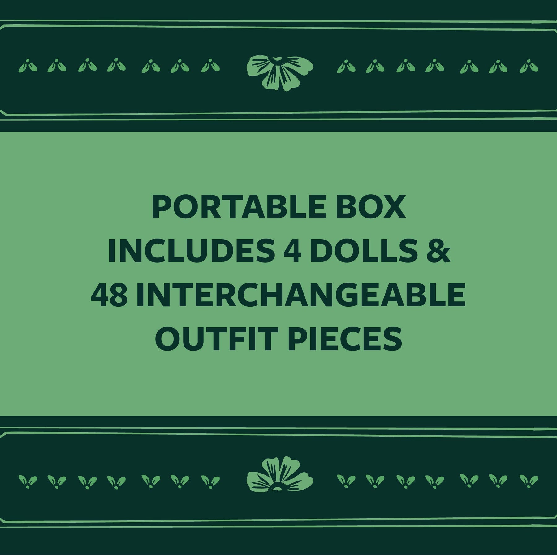 Housed in a delightful portable box, the set includes four dolls and forty-eight interchangeable outfit pieces. The stylish separates include artfully illustrated gorpcore jackets, botanical print robes, dapper suits, couture capelets, and more. Each daring ensemble fits all four dolls and can be paired with accessories, shoes, hats, wigs, purses, and pet dogs to complete the look. Dress these dolls to express your funkiest fashion fantasies!
