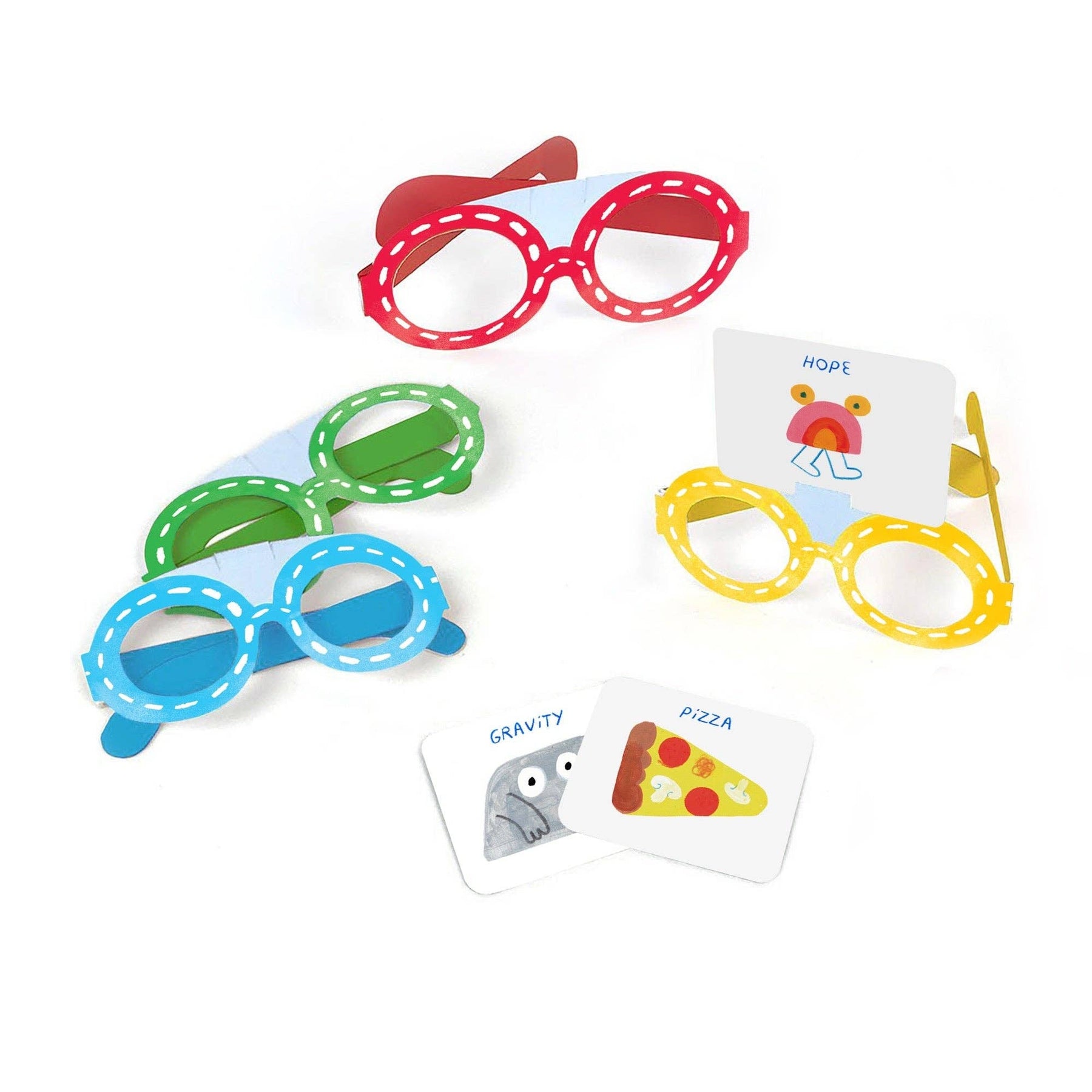 Simply pop a card into another player's glasses and get to guessing! Half the deck will help children understand and talk about Invisible Things like emotions, sounds, and dreams as they ask thoughtful questions: "Am I a feeling?