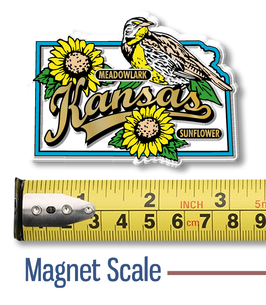100% made in the USA, ensuring top-quality craftsmanship and design. Perfect for any refrigerator or magnetic surface, this Kansas Bird and Flower State Map Magnet is a great gift or collectible item.