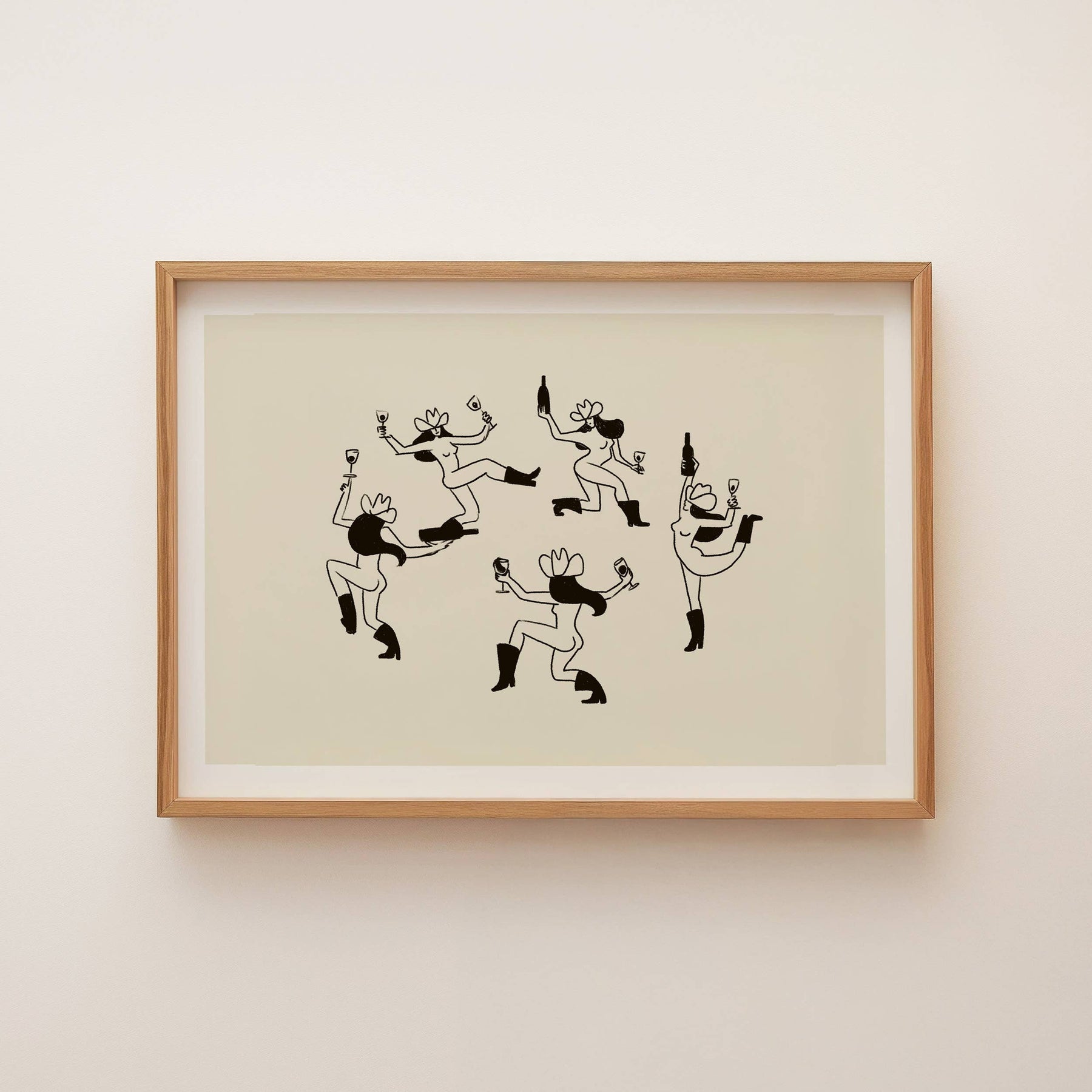 Give your customers a piece of art that’s both compelling and full of character. This print showcases a group of cowgirls dancing in a circle, captured in a sketchy, hand-drawn style with a retro, vintage vibe. The scene, inspired by a classic work of art, offers a fresh perspective on western wall art.