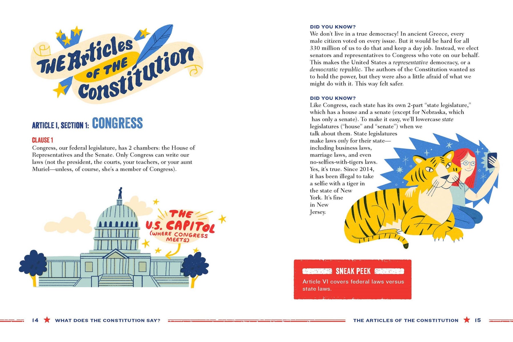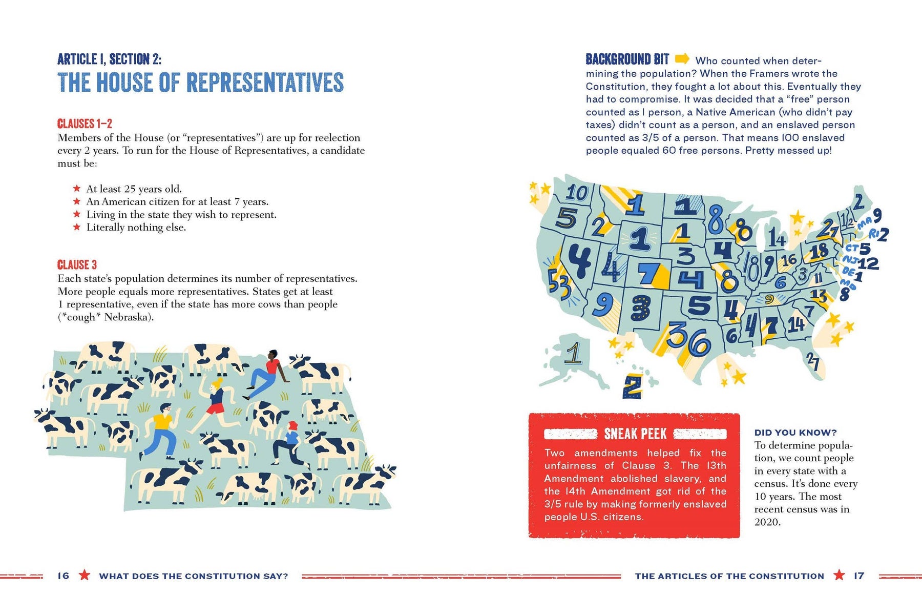 What Does the Constitution Say? takes you on a tour of the whole Constitution while explaining what its fancy words really mean. From the Preamble to the 7 Articles to the 27 Amendments (so far), this fun-to-read guide is packed with bite-sized info, historic quotes, and graphics on important topics such as: