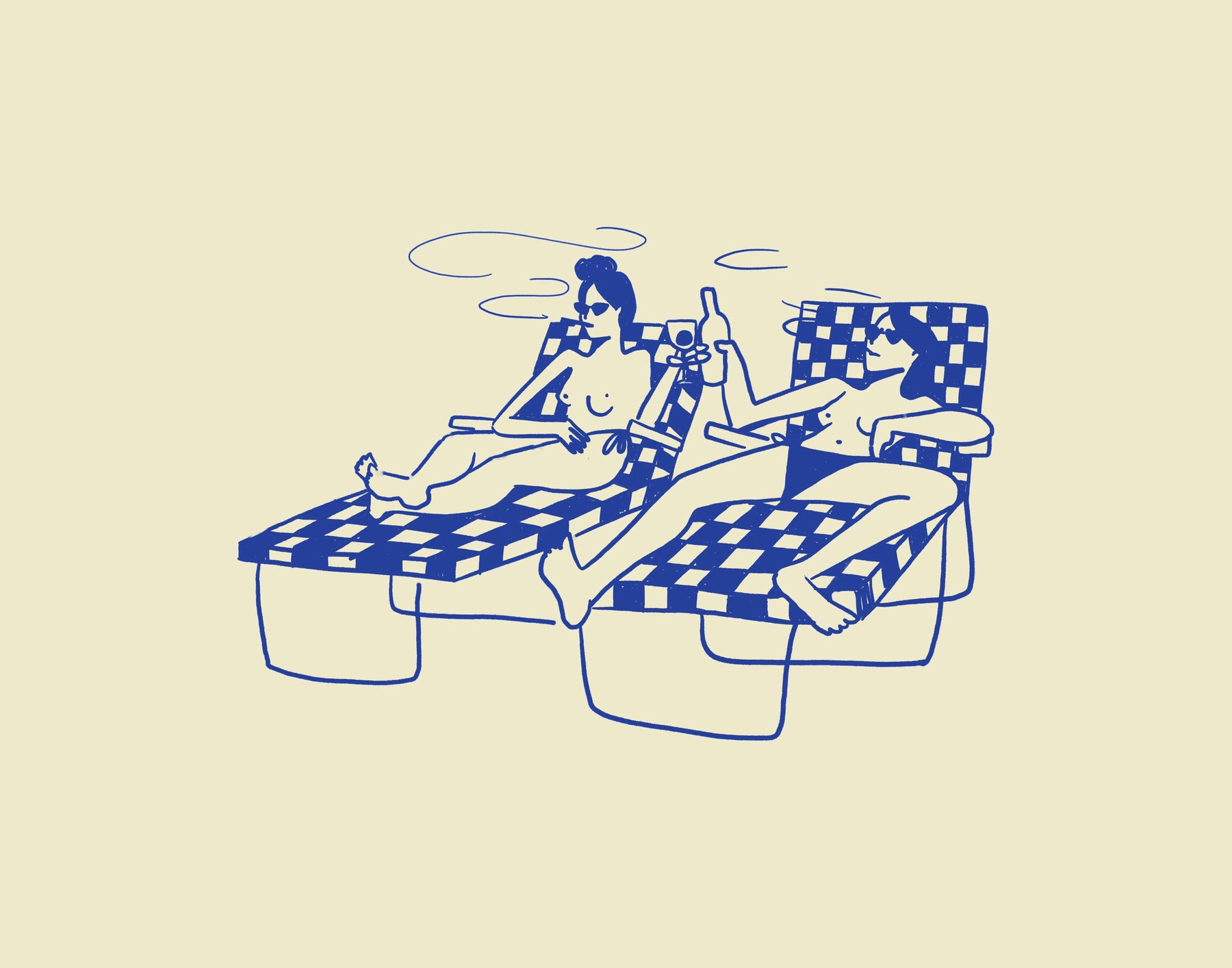 Give your customers a piece of art that feels like a mini-vacation. This unframed art print captures a delightful moment of two ladies basking in the sun by the pool, sipping cocktails and wine. With a soft butter yellow background and dark blue line drawing, it's a wonderfully relaxing piece of wall art that brings a touch of summer fun to any home decor collection.