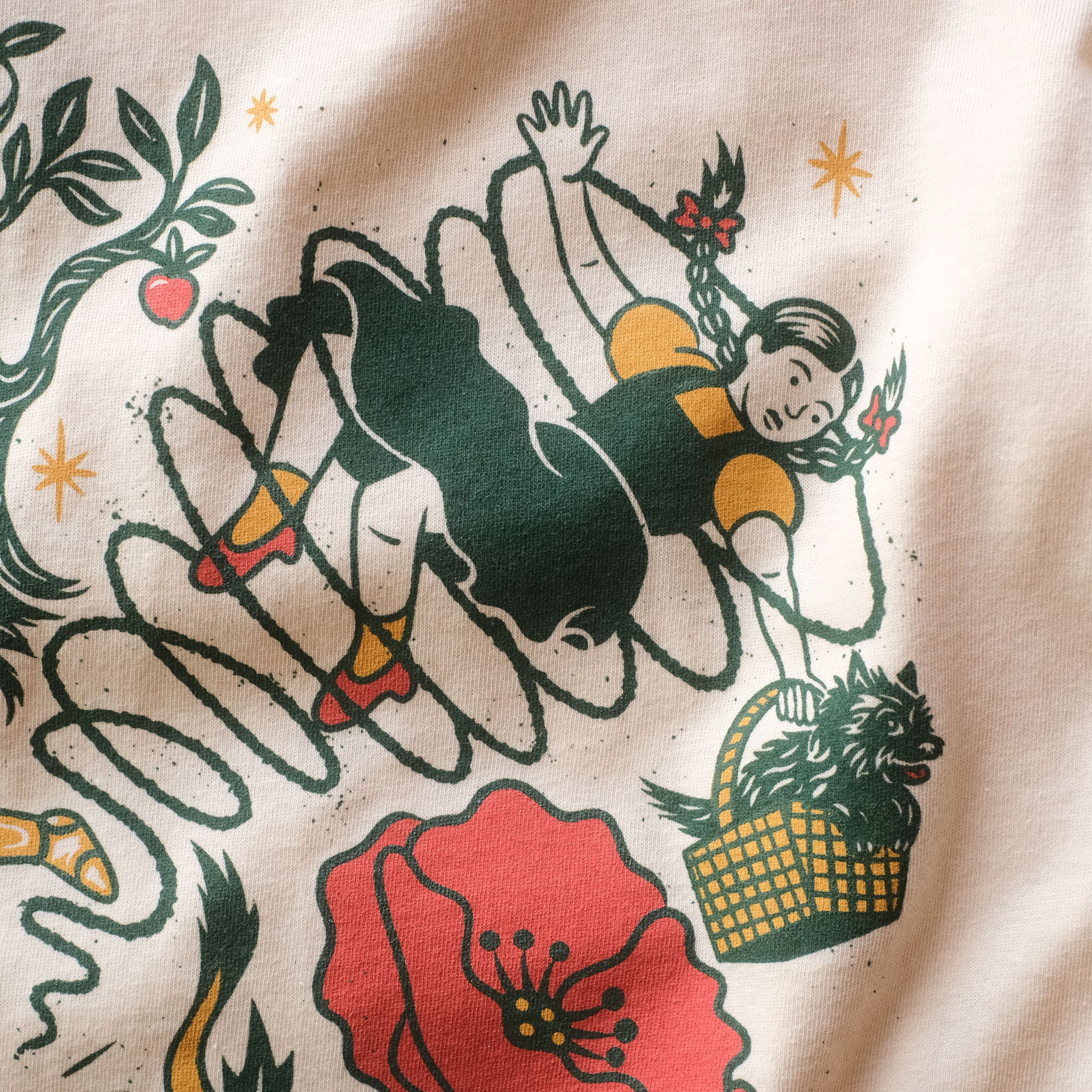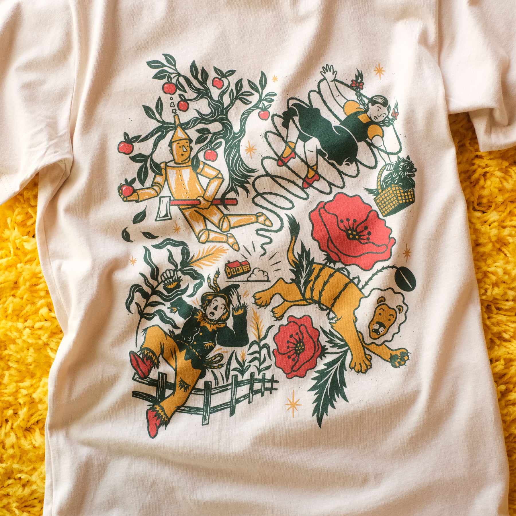 Vortex Souvenir is over the rainbow to offer this exclusive Wizard of Oz inspired tee by Illustrator Hannah Scott. Join Tin Man, Dorothy, Toto, Scarecrow, and Cowardly Lion on their exciting trip to the Emerald City.