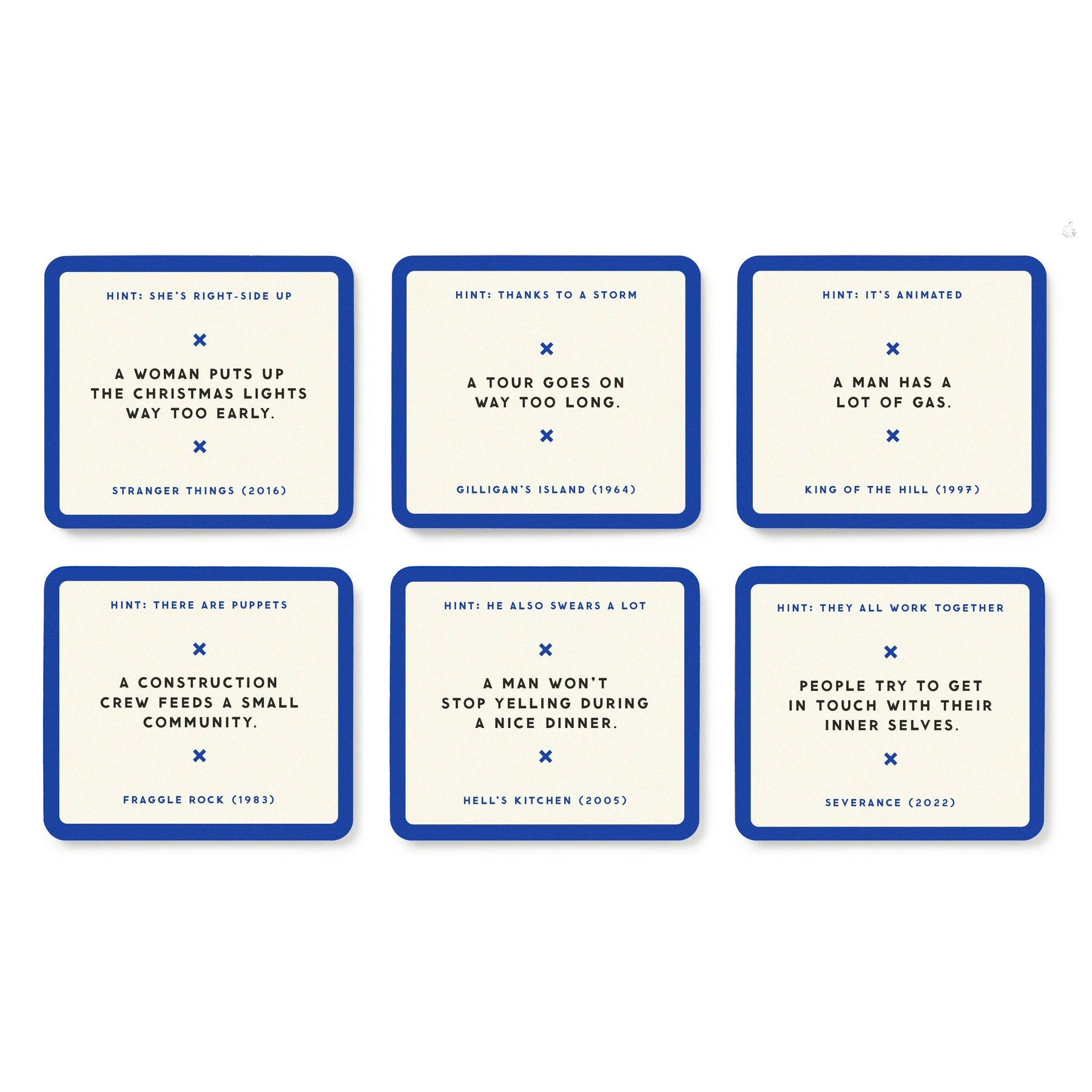 * Includes 300 cards, featuring a uniquely-terrible description of a TV show.