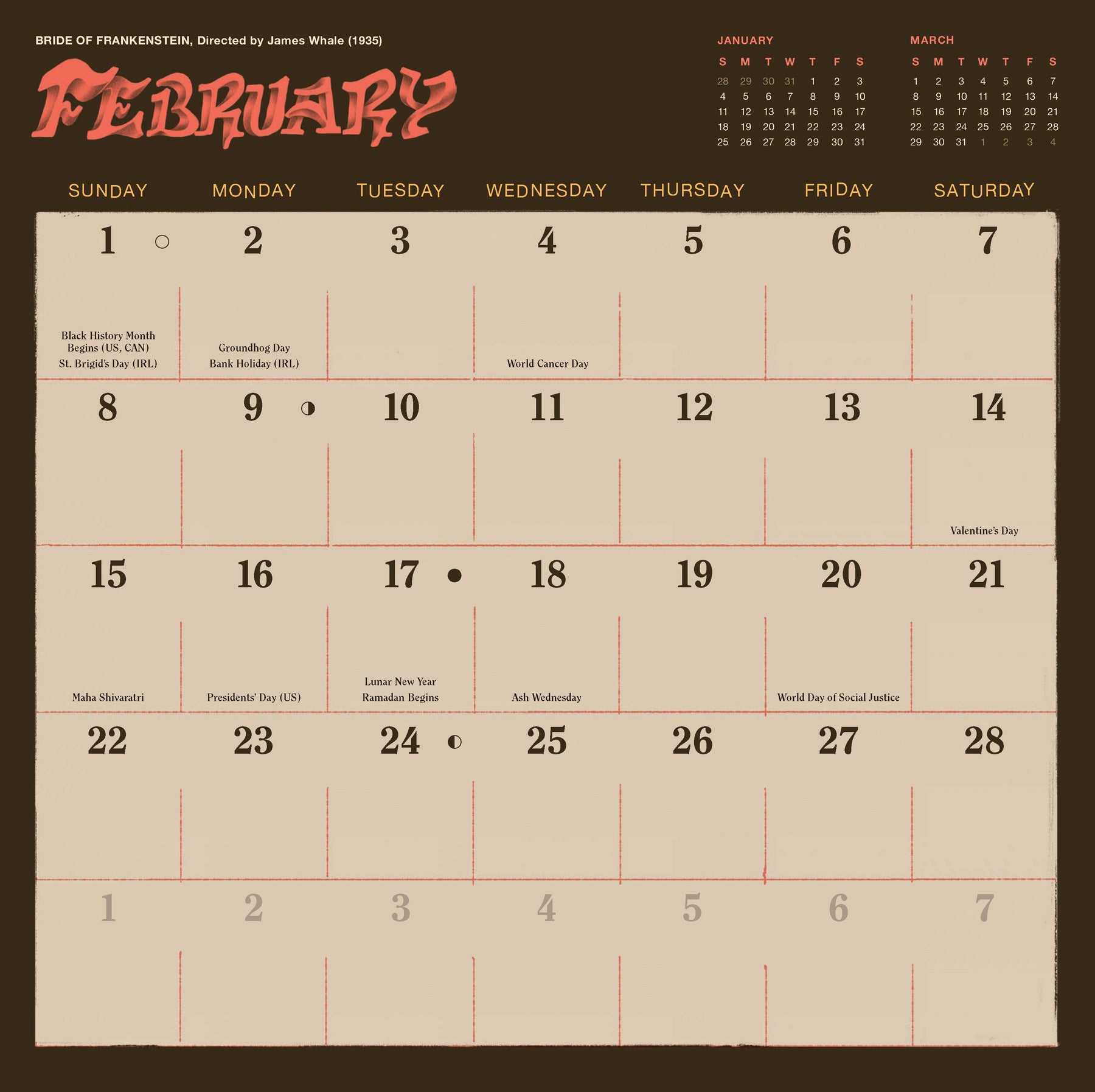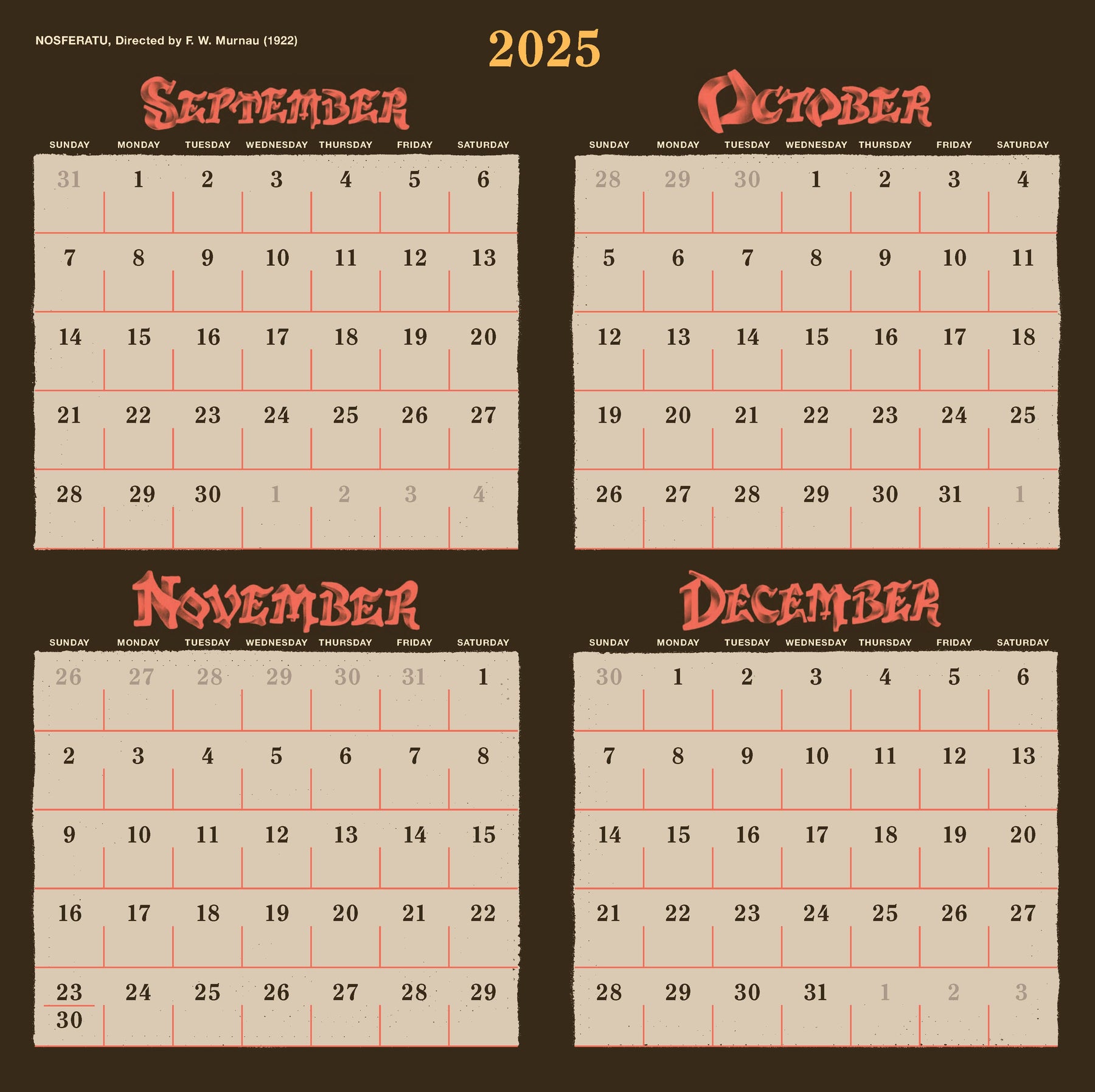 It’s spooky season all year round with this beautifully creepy wall calendar featuring gorgeous custom artwork that celebrates classic and new-classic horror movies.