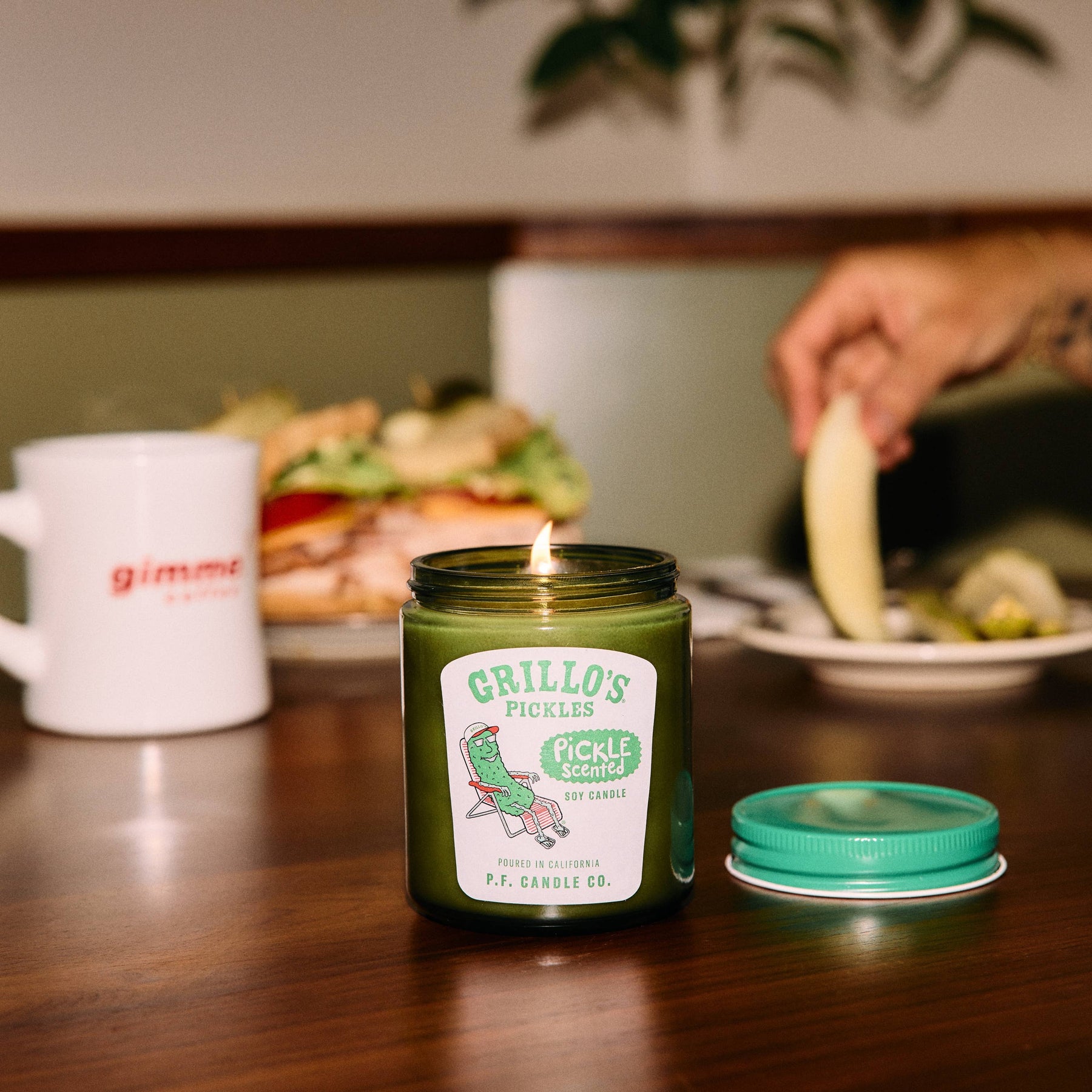 In honor of National Pickle Day, P.F. Candle Co. joined forces with the brine-y icons at Grillo’s Pickles to create a limited edition soy candle inspired by their 100-year-old pickle recipe!