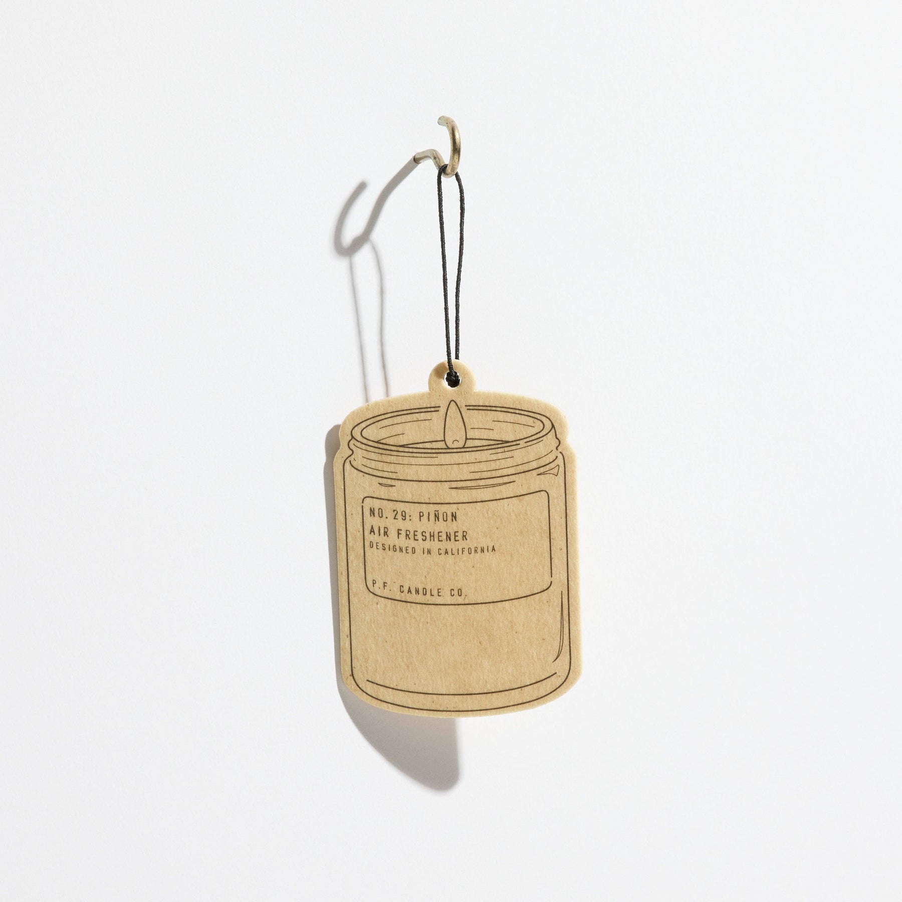Air Fresheners are pre-packed in pairs, featuring an iconic P.F. Candle-shape and signature kraft paper look.