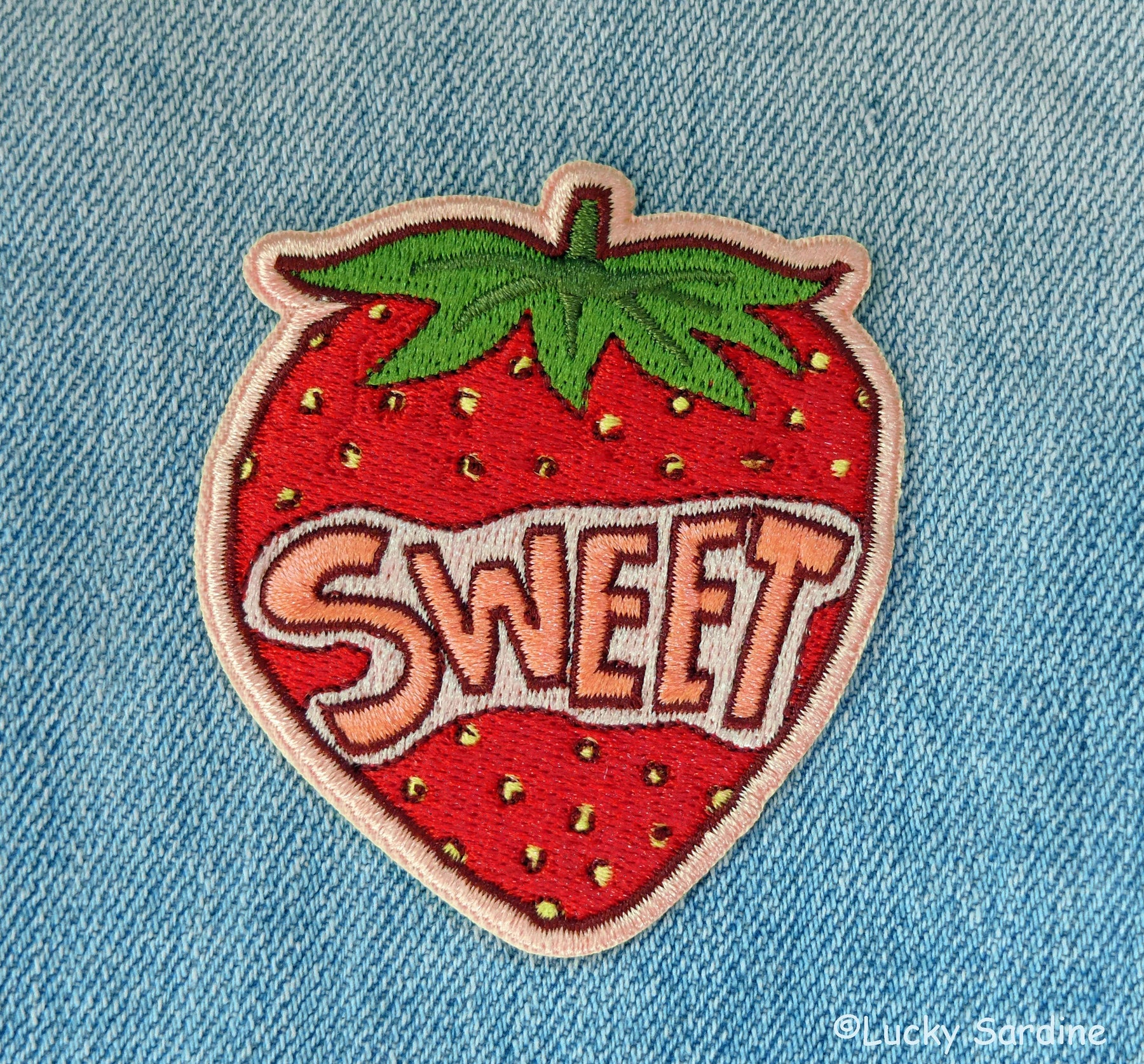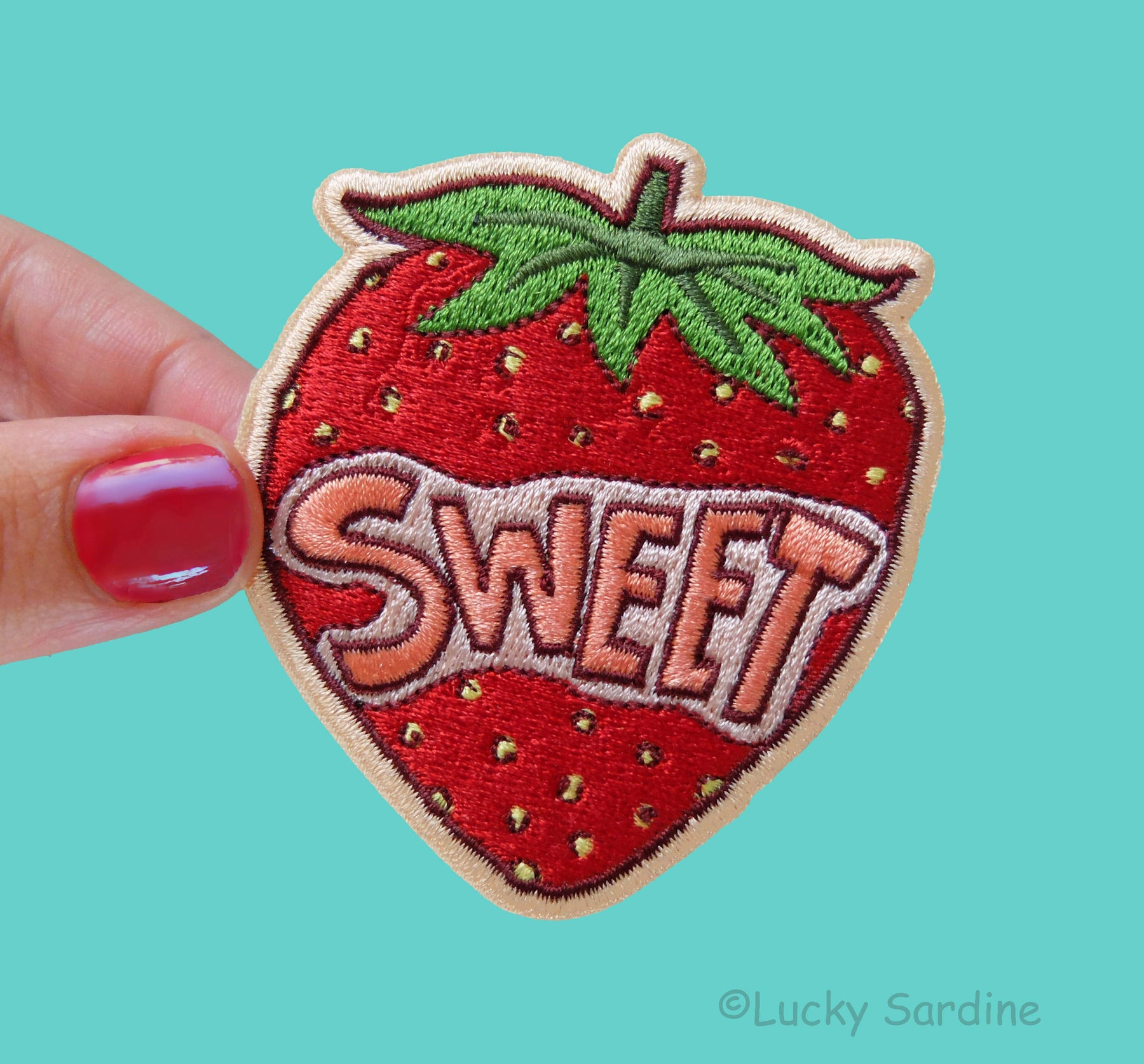 * Sweet strawberry, embroidered patch with an iron-on backing.* Roughly 2.75" wide x 2.7" tall. * Designed and lovingly assembled in South Carolina.