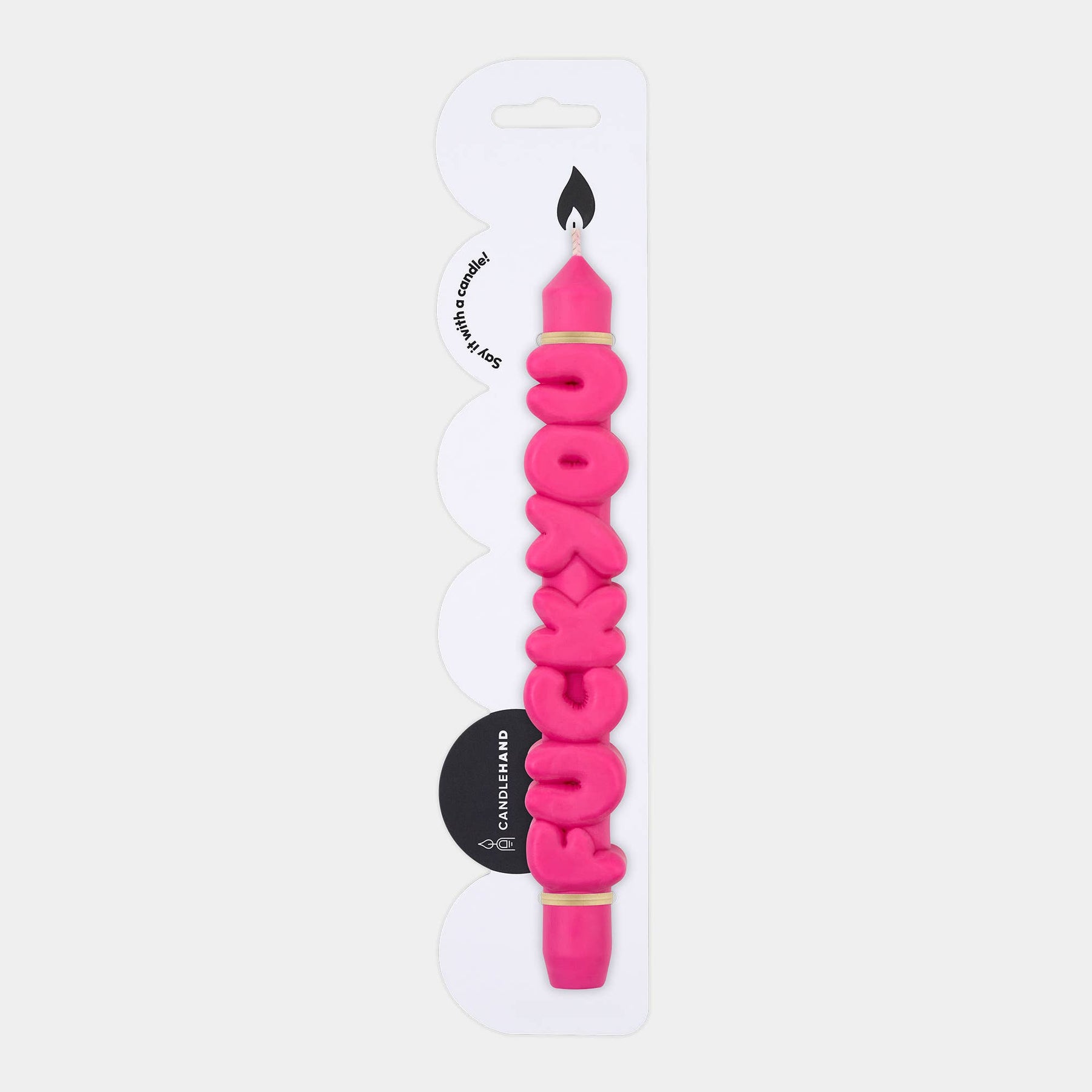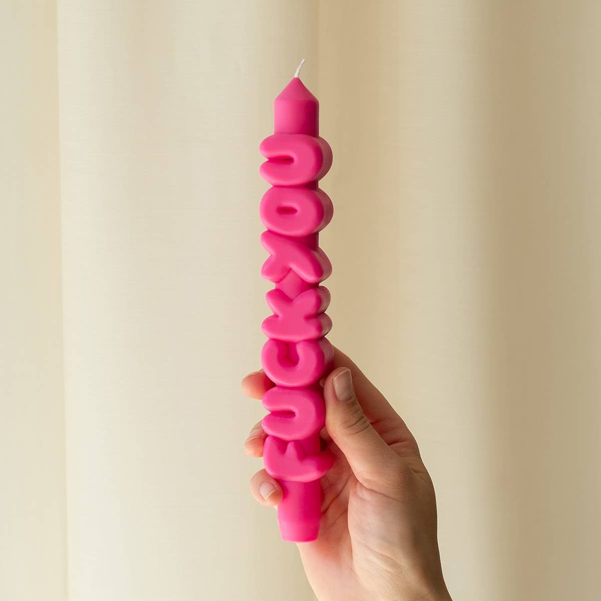 A taper candle with a clear message 'F*ck You'. Let the candle do the talking. This candle is made by hand from the shape right to the finish.
