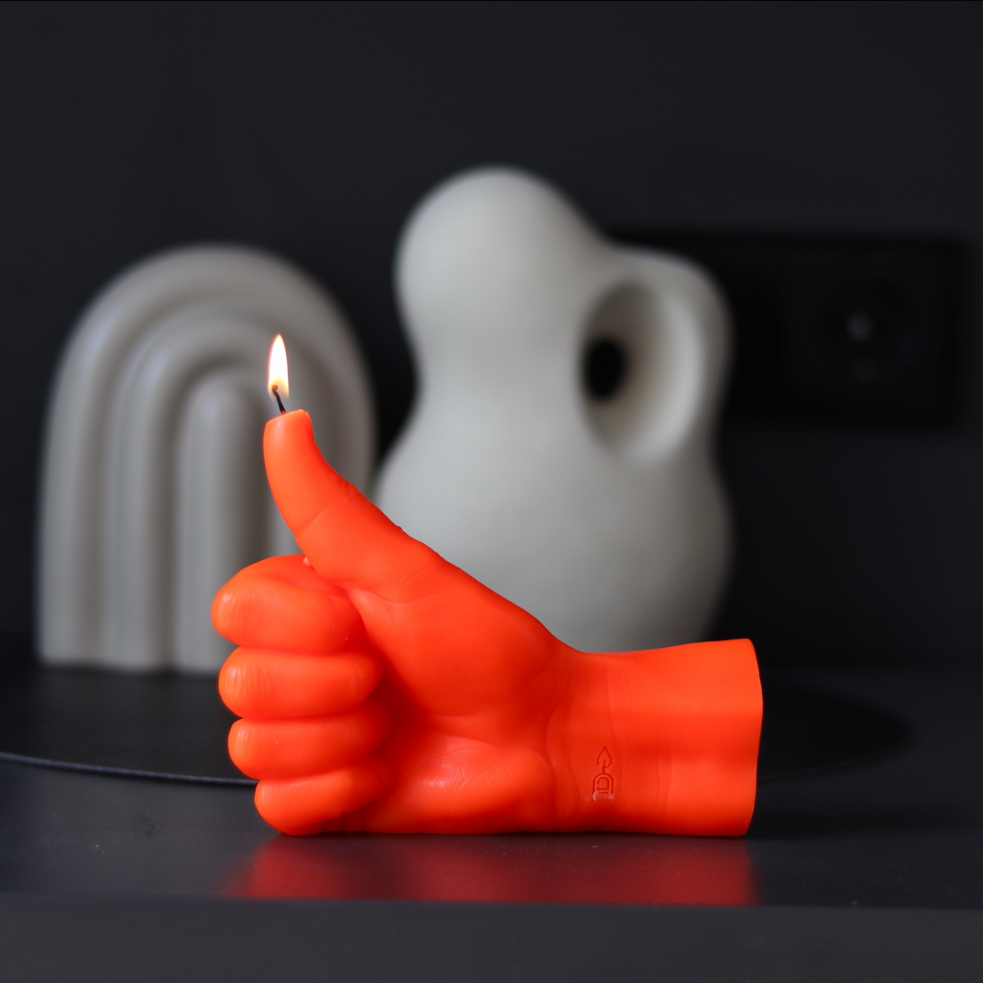 This real hand size 'Thumbs Up' candle send a clear message. This iconic gesture, which was made even more popular by the Facebook ‘Like’, is now available in the shape of a real hand size candle.