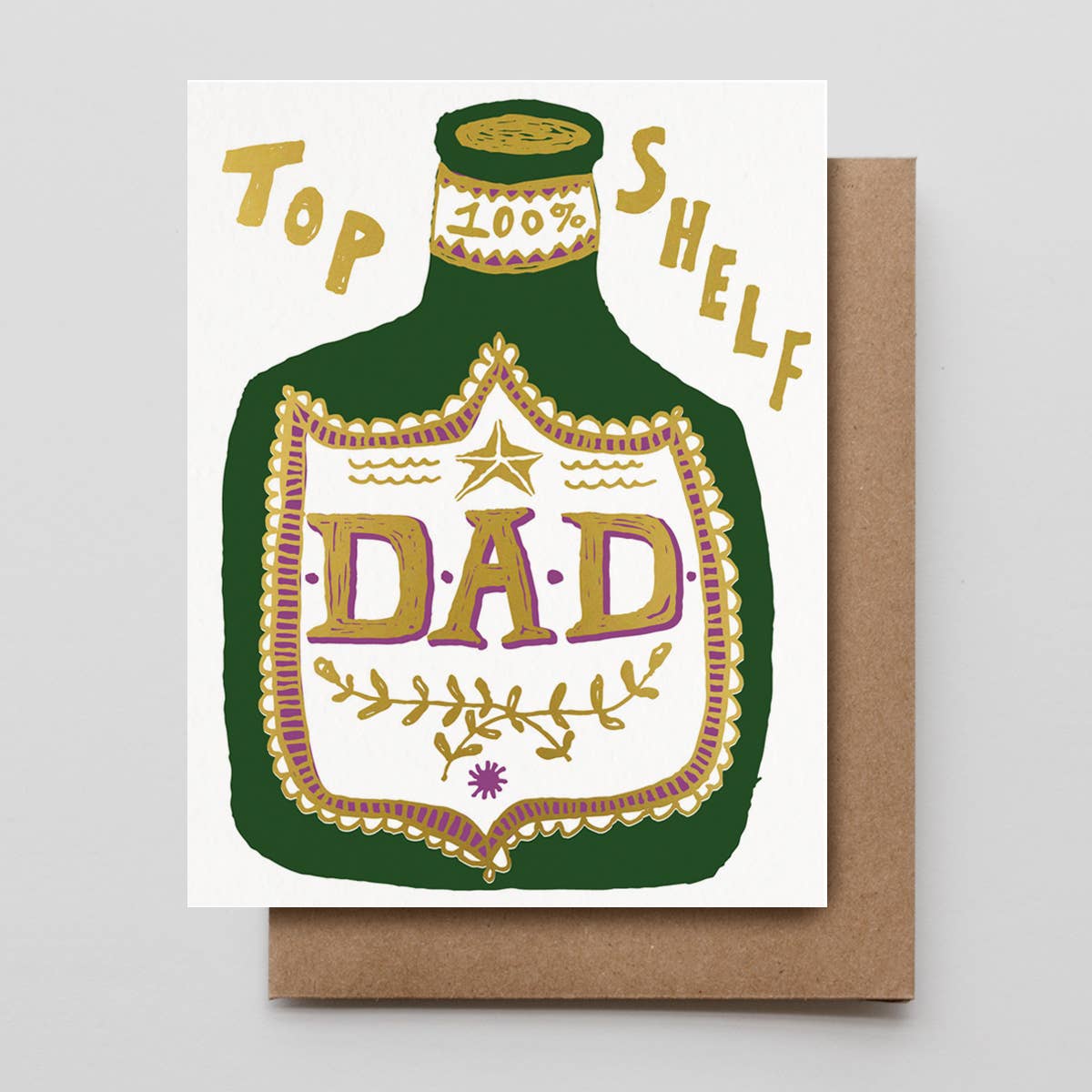 Folding note card with kraft envelope. Letterpress printed on 110lb recycled white paper. Blank inside.